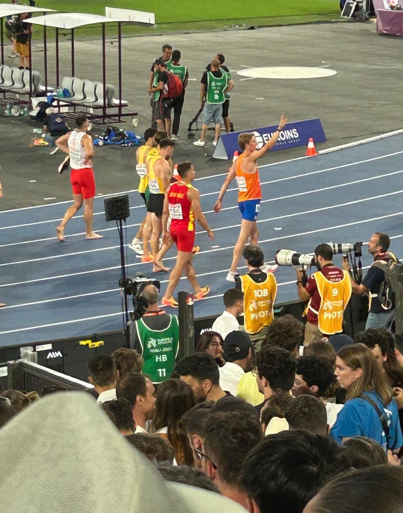- Niels Laros bungelt in de tweede reeks aanvankelijk achteraan, maar komt op drie kilometer naar voren. Met nog tweeëneenhalve ronde te gaan is er iets mis, hij loopt nog even door maar stapt vervolgens uit de baan. Toch last van een lichte achillespeeskwetsuur die hij na de 1500 meterfinale voelde opspelen.