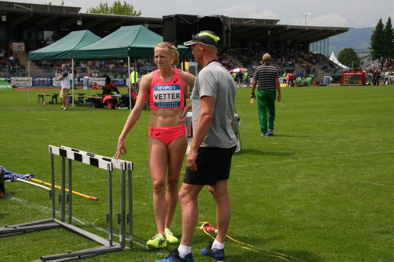 Ronald, Vetter Emma Oosterwegel coachend tijdens het hoogspringen in Hypo meeting Götzis