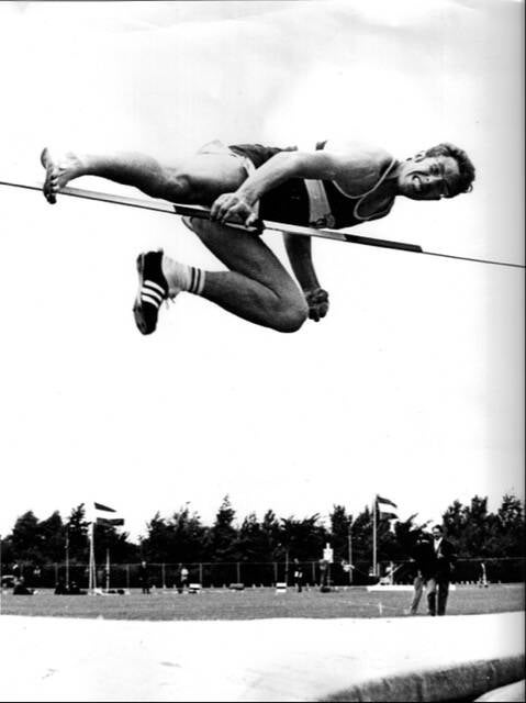 Valery Brumel toont op deze foto het ‘opendraaien’ van het afzetbeen boven de lat waardoor deze niet wordt getoucheerd.