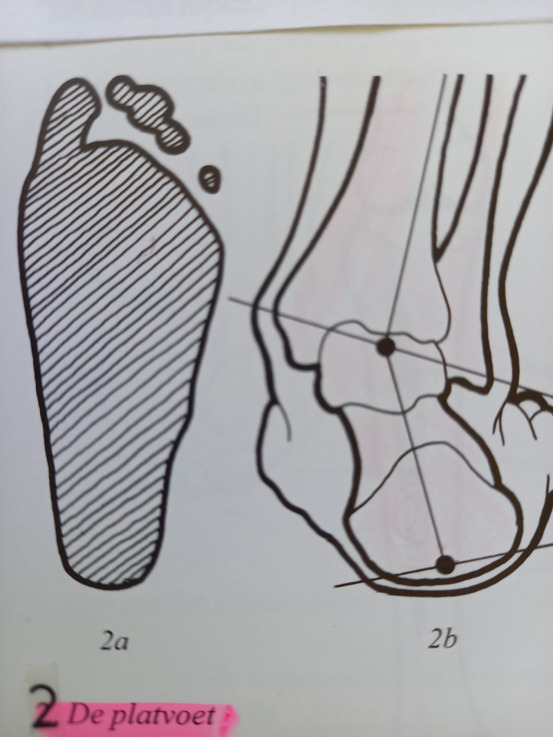 B) Deplatvoet(enorme belasting van de bandjes aan de binnenzijde van de voet)